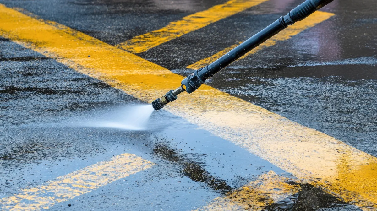 High-pressure cleaning removes oil stains, tire marks, gum, and ground-in dirt, restoring your lot’s clean appearance.